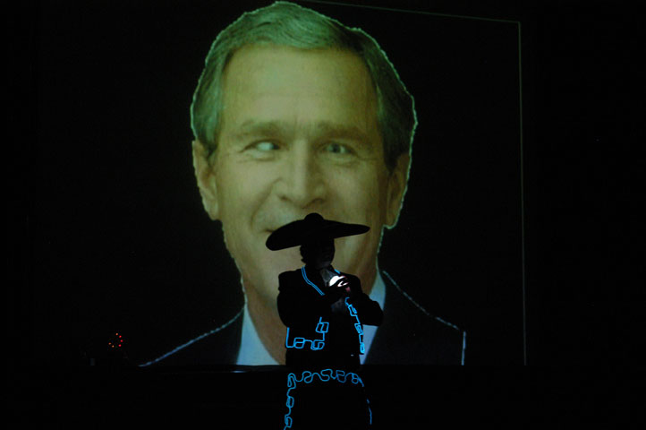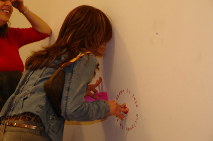 En la segunda sección de agujeros hay dos interruptores, uno que dice ENCIENDE LA TELE y otro mas que dice APAGA LA TELE. Cuando el espectador acciona el primer interrumpotor, un video de un televisor en llamas comienza a proyectarse. Cuando el espectador acciona el segundo interruptor un video de un carro de bomberos aparece y apaga el televisor, entre ambas proyecciones se dá un fade in/out para salir del campo de visión.