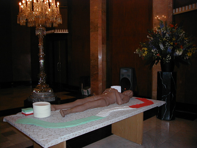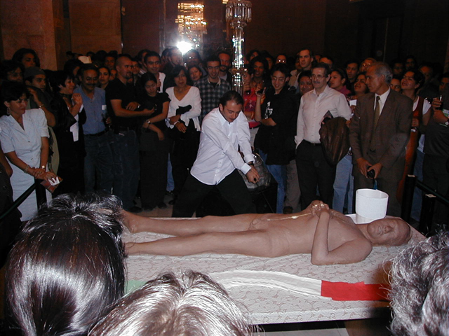Human chocolART sculpture that the audience ate until only crumbles remained.