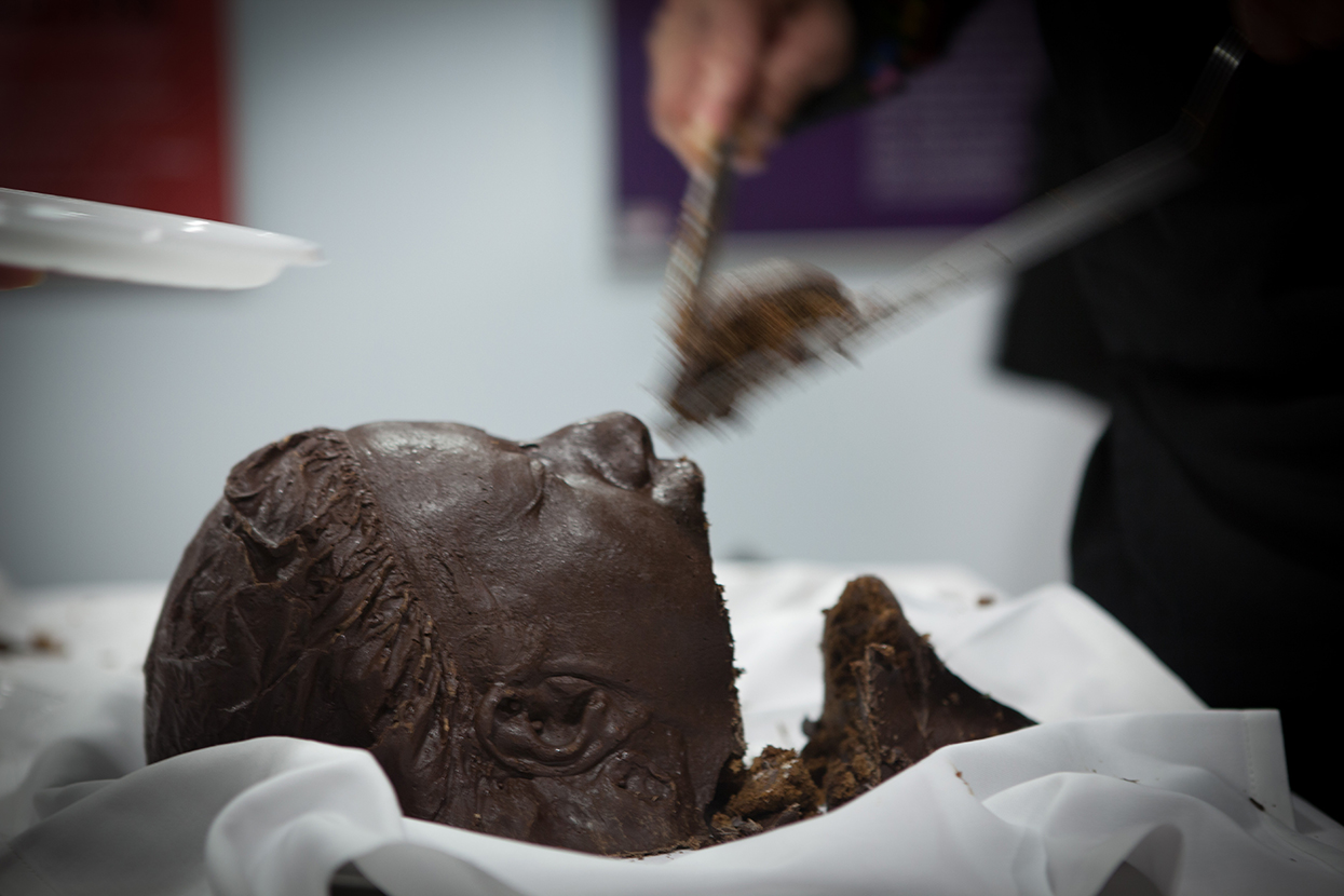 The artistic work of César Martínez Silva has moved through different conceptual techniques and productions, including using gunpowder and dynamite for artistic purposes “deconstructing the destructive”, creating with that which destroys; and also using electronic and digital media in different mediums, including both on-screen and interactive performance pieces. The creation of edible and digestible human sculptures has opened opportunities to both view and sample the artist’s work in different countries. His goal: share his point of view on the Tratados de Libre Comerse (Free Food Agreements) like the North America Cholesterol Free Trade Agreement or the North America FAT Free Trade Agreement.