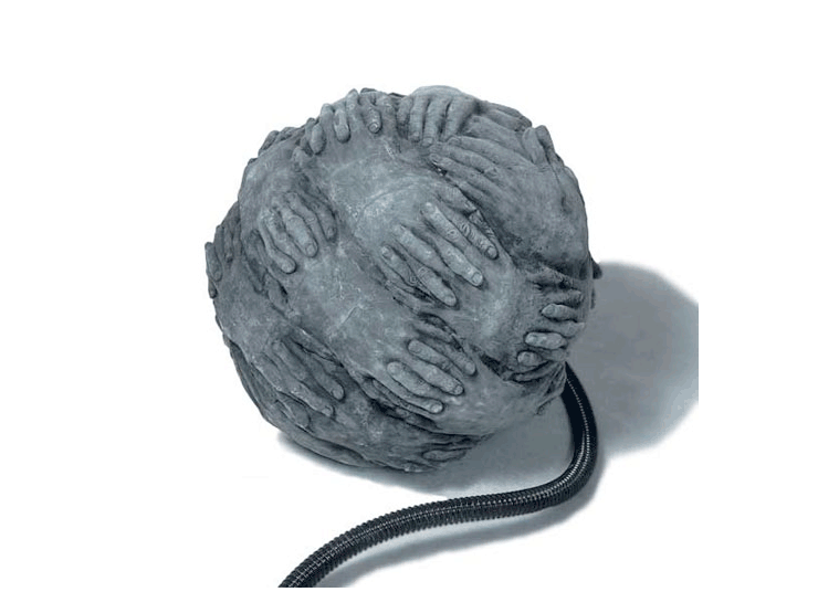 Hule látex vulcanizado, sensores de movimiento, pistola de aire y suministro. Esculturas inchables que se inflan y desinflan cuando la presencia del espectador es detectada.